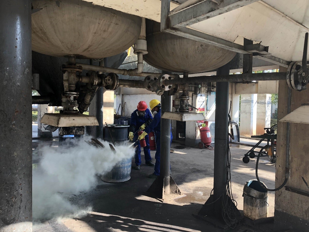 在1號釜下模擬滅火。