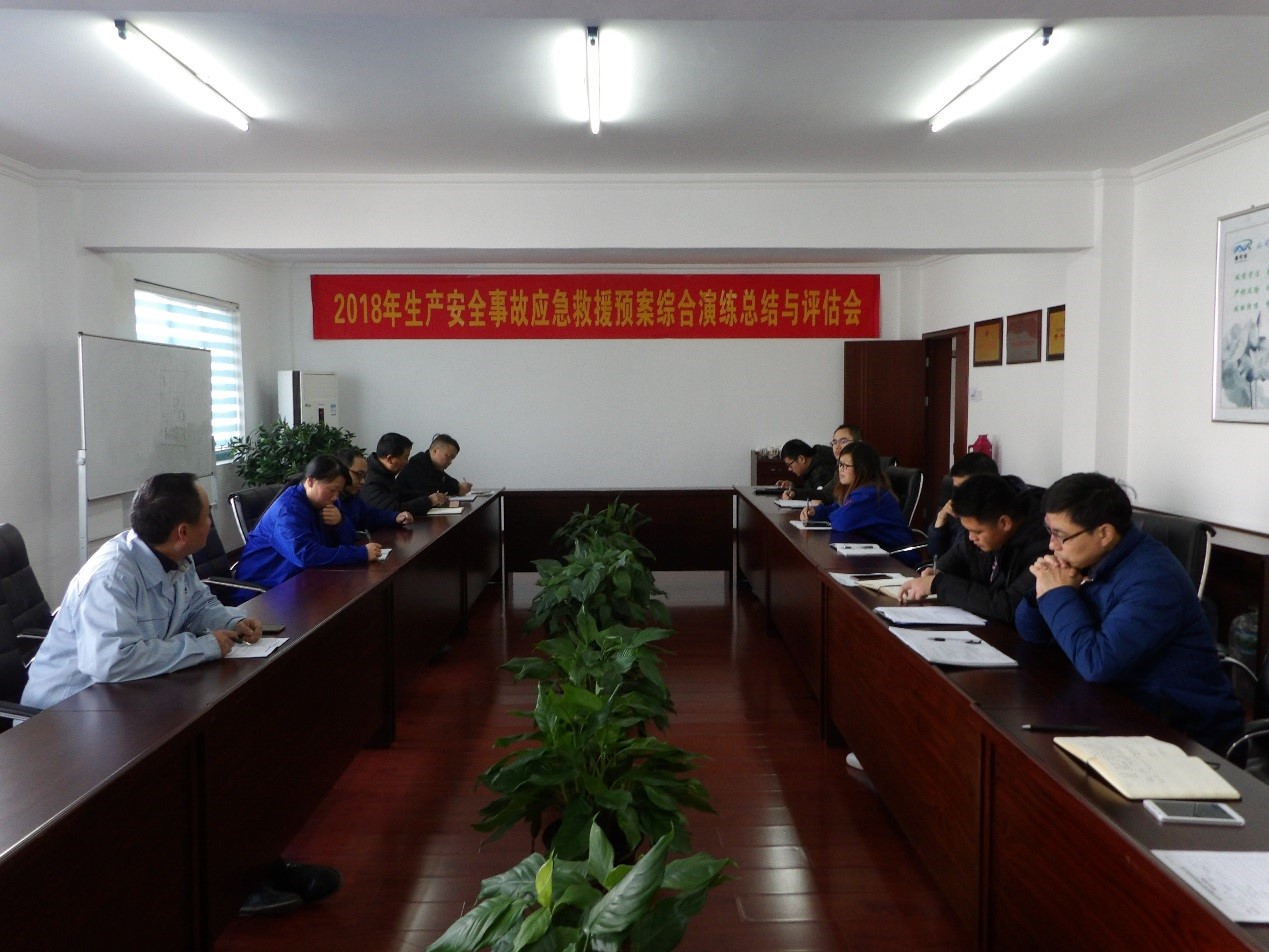 公司組織開展應(yīng)急預(yù)案綜合演練的總結(jié)和評估會議。